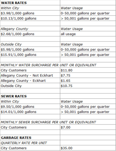 Utility & Garbage Rates